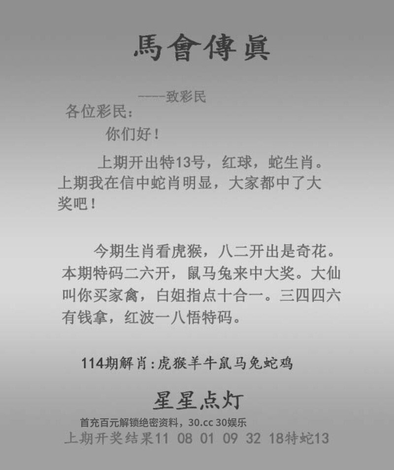 解:今期生肖看大门,一路顺风坐马车,看大门狗肖,明肖马,十四十五二八中,十三二三轮流出,14龙,15兔,28虎,13蛇,23羊,生肖送你鸡兔蛇,猴马鼠肖不能缺,明肖鸡兔蛇猴马鼠,五音之内开连码,三零开出十三得,30鼠,13蛇。